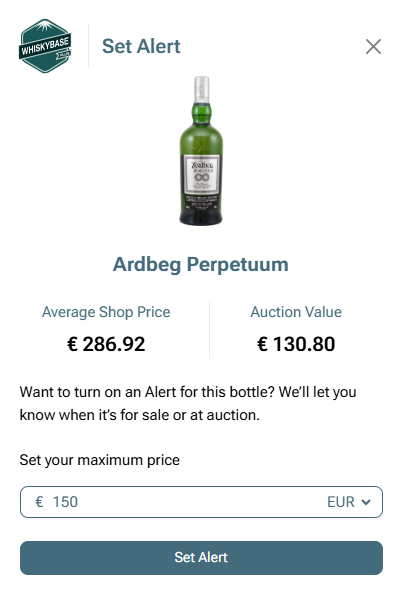 Whiskybase Plus members can set Price Alerts to receive notifications when a specific bottle becomes available: